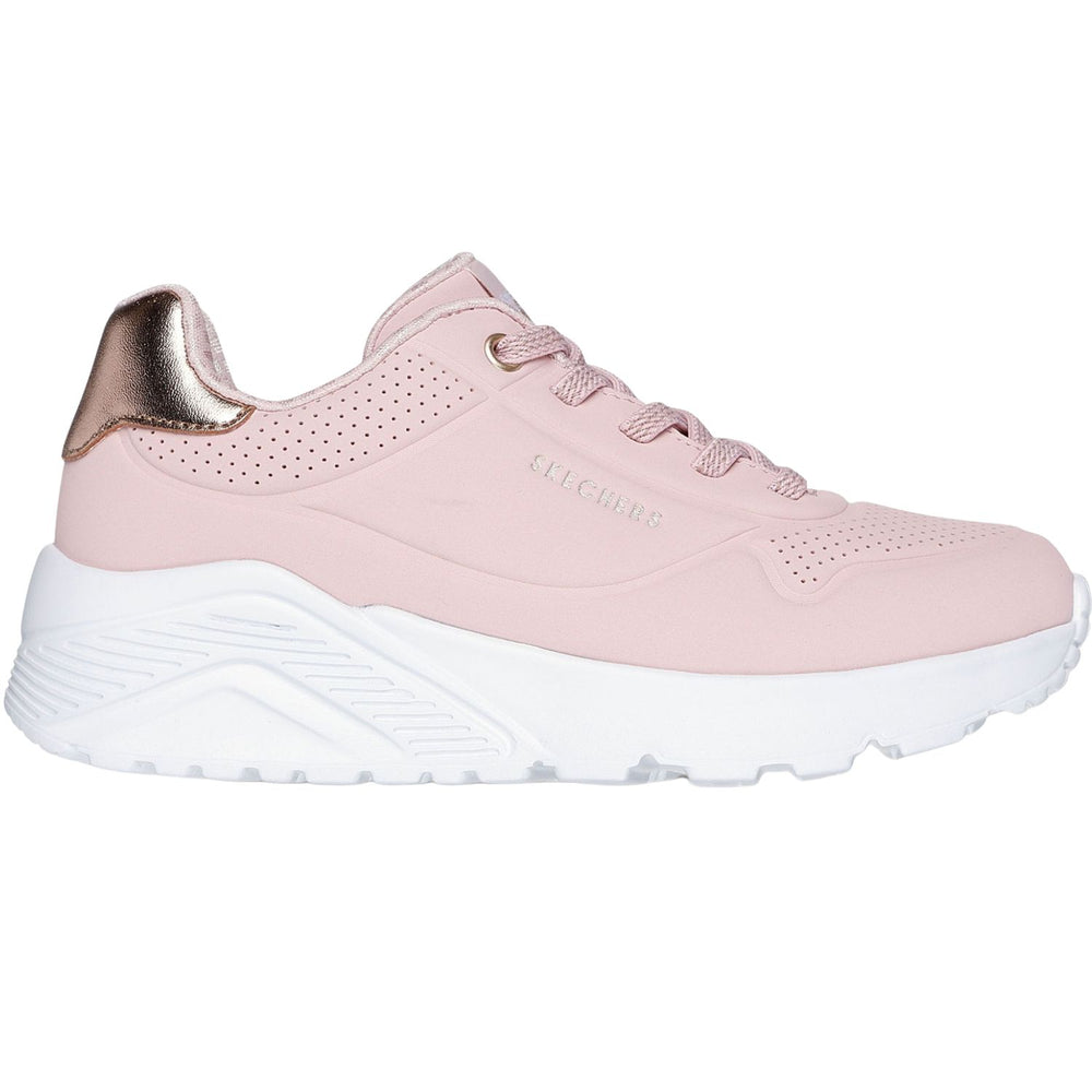 • Design ed estetica si fondono nelle sneakers da bambina Skechers Uno Lite Metallic Burst, che non sono solo una scarpa funzionale, ma anche un accessorio di moda che piacerà alle giovani fashioniste. Queste sneakers sono ideali per cambiare look e adattarsi a ogni occasione.