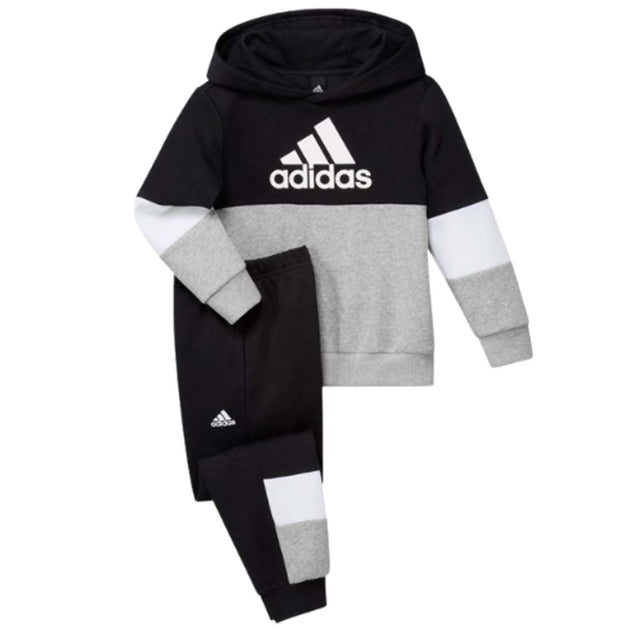 - Ce survêtement adidas pour bébé a toutes les qualités pour faire sourire les plus petits. La construction en polaire douce et les couleurs vives garantissent un look parfait à porter au quotidien. Les boutons-pression sur le sweat à capuche et la ceinture élastiquée sur le pantalon assurent une praticité maximale. À vos marques, prêts, partez... rampons !
