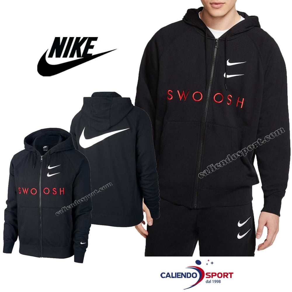 FELPA NIKE CT7362 010 NERO SWOOSH COTONE GARZATO